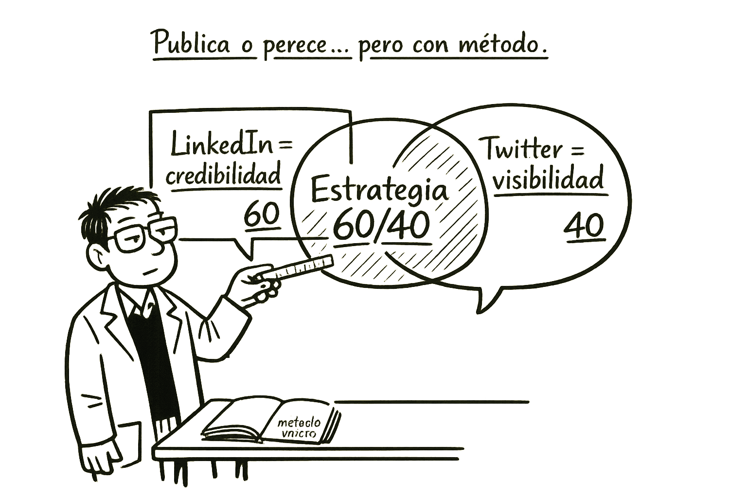 Analiza ventajas y limitaciones de LinkedIn y Twitter para investigadores y propone una estrategia híbrida 60/40 para maximizar visibilidad y credibilidad.